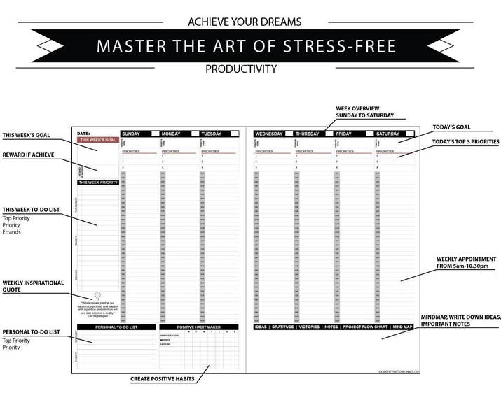 Promising review: "This planner is amazing!! It is so much more than a planner. It offers a place to not only chart your daily activities, meetings, etc., but also to track your weekly, monthly, and yearly goals, dreams, and aspirations while being able to reflect on your progress and learnings. It gives you a chance to deepen your self-awareness and increase your mindfulness. As a coach in training, I found this planner to not just be incredibly useful but also totally in line with the lessons I've learned coaching clients. I firmly believe everyone should have this planner. It helps you become a better version of yourself. This has become my go-to gift for everyone in my life." —Shannon
