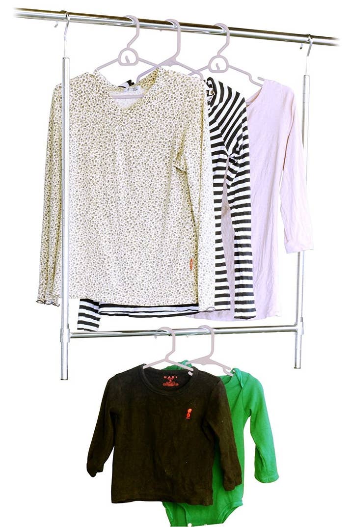 7. A closet doubler that hangs on your existing rod to create a *whole extra row* of hanging space.